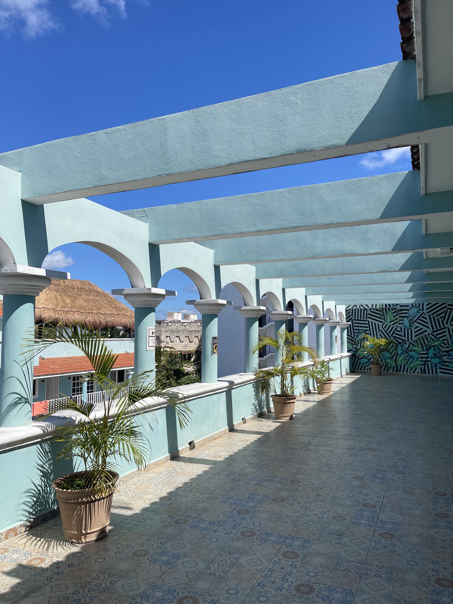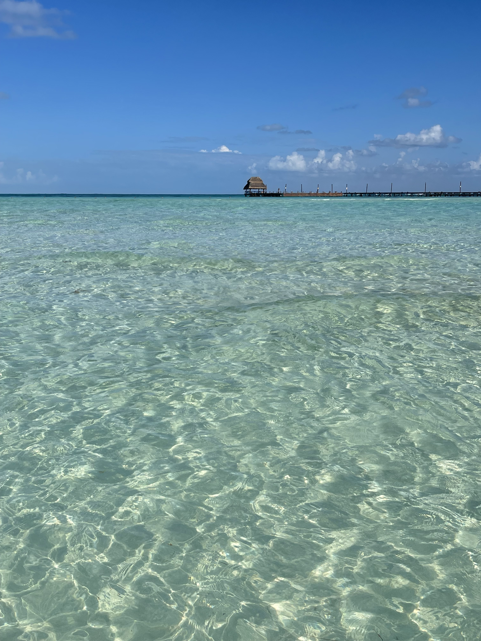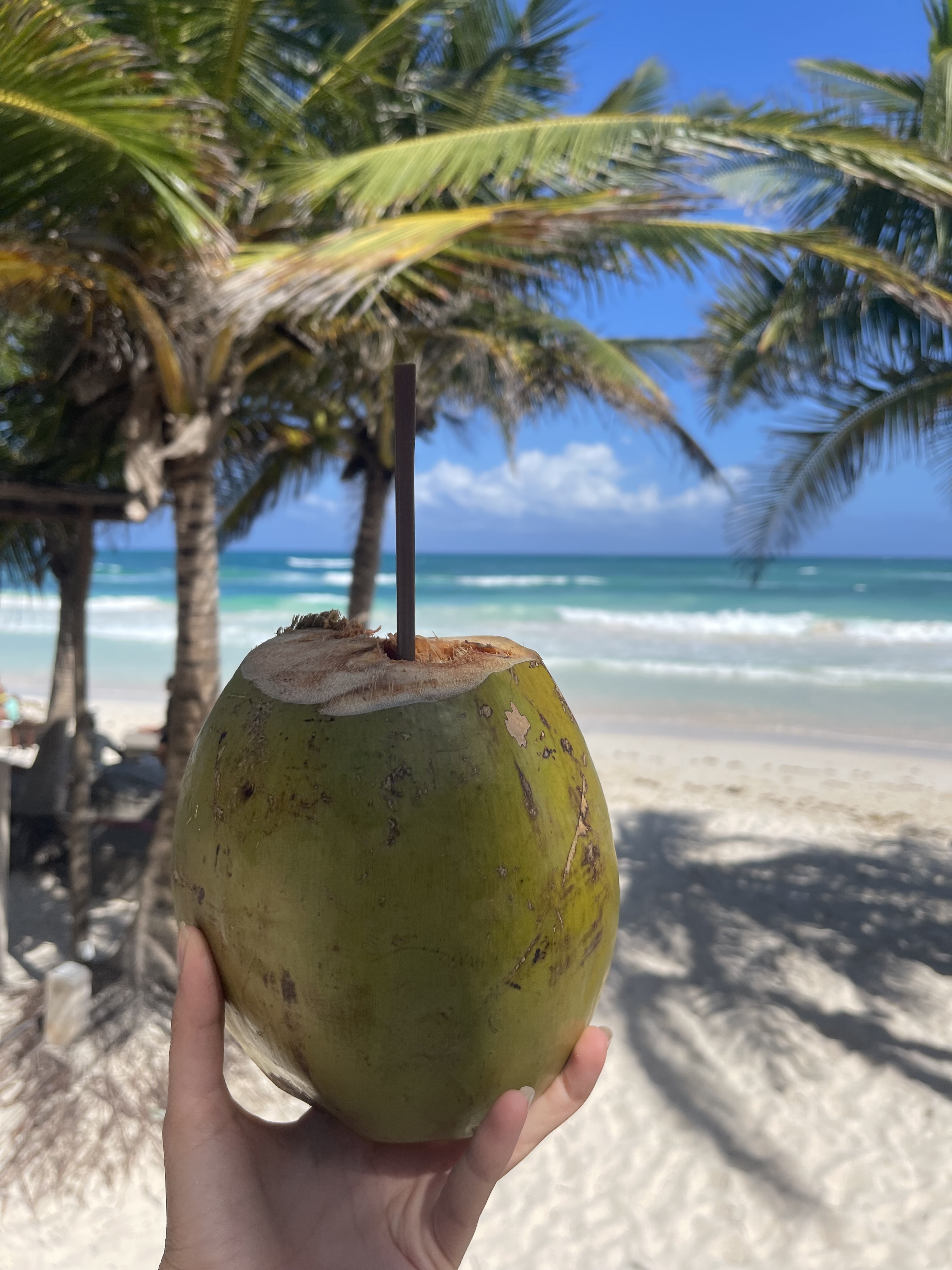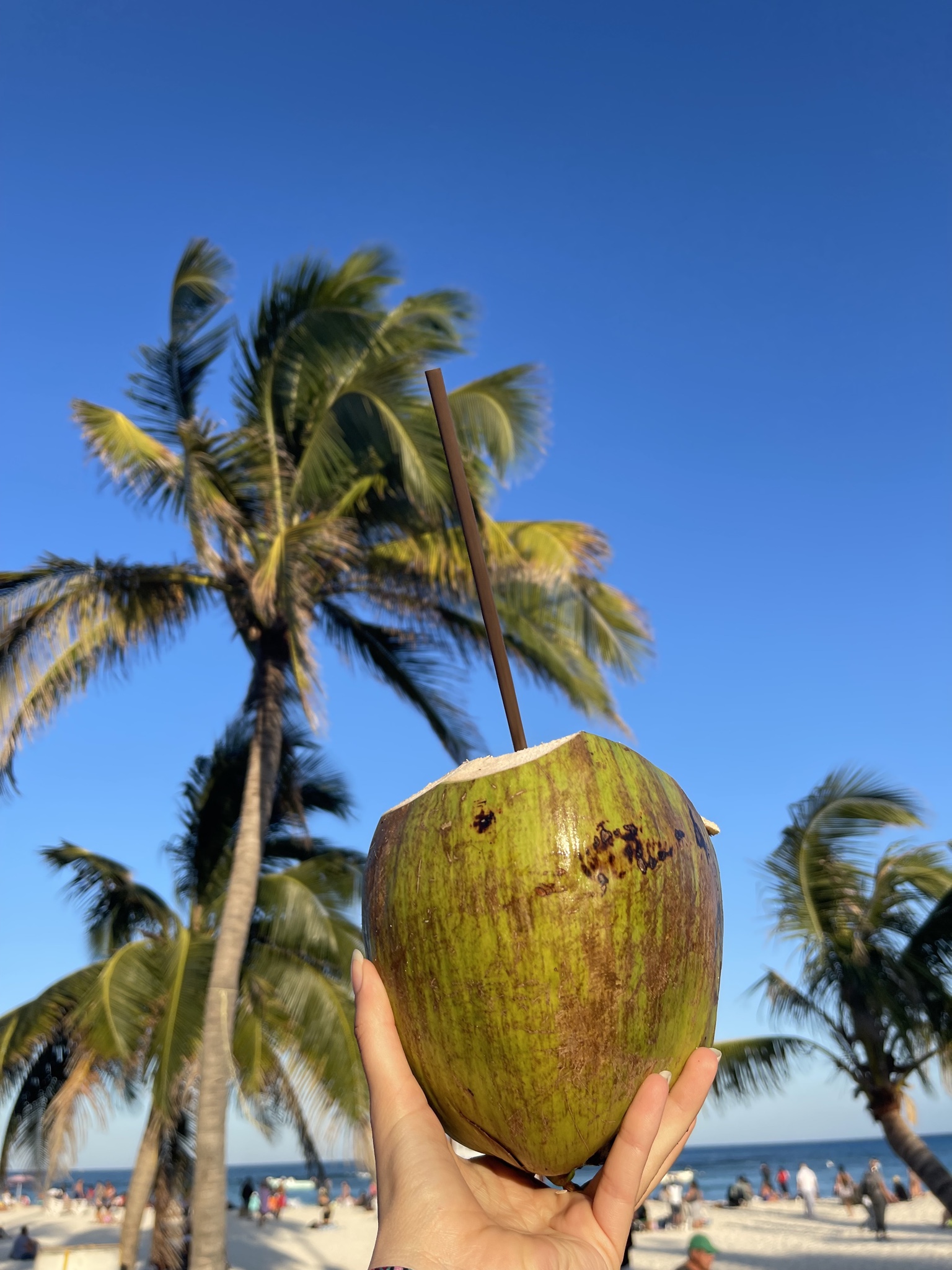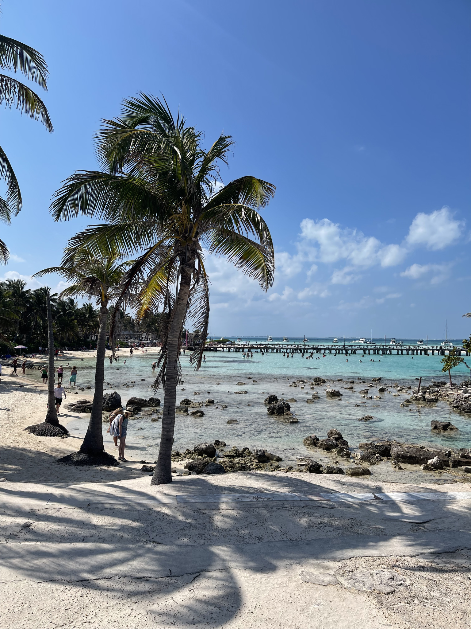 I woke up at 8 am I did a breakfast and took few photos around the hostel and than I went to take the ferry to Isla Mujeres at 10:30 am one I got there I went to the hostel to do the check in and I went to the bar to drink and eat something and relax, after I went to the beach to explore the zone around and wow the beach is amazing I couldn’t imagine that honestly I loved it. I got a coconut water as well finally so yes I could say that I can totally start to enjoy the vacation atmosphere. I went to watching the sunset at the sunset spot it was beautiful between the palm trees and after that I walk around the island and I eat on the street one hot dog and one churros can’t complain, after this long beautiful day I come back to the hostel and I went to sleep.