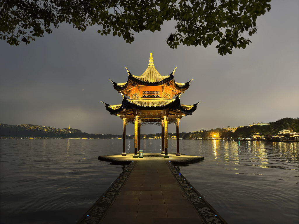 We woke up at 6:30 am packed everything and then by 8 am we were on a Didi on the way to the Shanghai Hongqiao Railway Station to catch the train to Hangzhou at 8:59 am and we got there at 10:10 am at the Hangzhou East Railway Station and from there we took the metro to our hotel West 7 Servive Apartment getting out at Longxiangqiao and from the metro we walked under the rain unfortunately and we struggled a bit to find the hotel but C lucky founded and we could check in even a bit earlier. Then we left the room and under the rain we went to search for a McDonald which was very near by since we were very hungry and then back to the hotel we took a hot shower and we chilled a little bit. Then around 6 pm we went out to get some food or a bubble tea and buy an hard disck at the shopping mall Hubin Yintai in77 but it was massive and actually we couldn’t find anything so we just went to Jixianting to see the sunset which it wasn’t great unfortunately so we just enjoyed the place by night that we the illuminating actually was very cool and we also saw the fountain game. And then we went back to the hotel we bought same instant noodles at the and we had them for dinner and then we went to sleep.