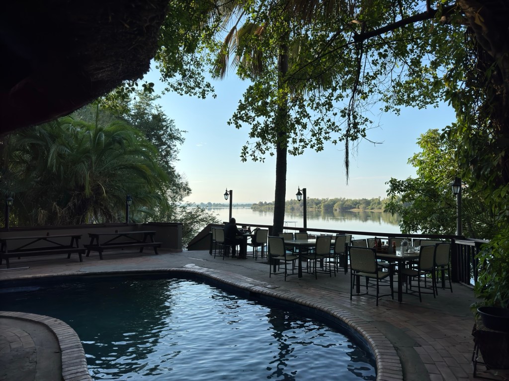 ( breakfast view at the Victoria Falls Waterfront, Livingstone )