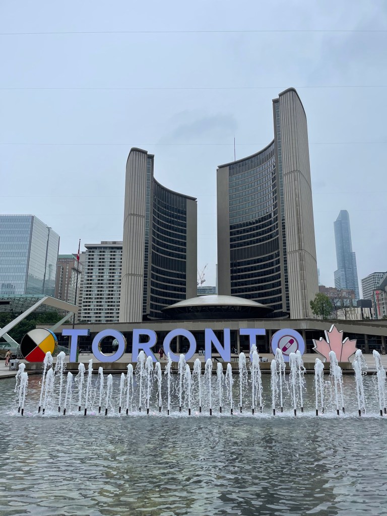 I woke up at 6:30 am for the noises and the light in my room but then I could sleep a bit longer luckily. But than when I woke up unfortunately was raining, I went to the coffee shop in front of my hostel Jimmy’s Coffee and I got an iced tea and a croissant. Than I walked in queen street west, passing by Chinatown arriving in Nathan Philip Square and getting into Eaton Center all this while it was raining and yes was pouring unfortunately but well at Eaton I exchange the money I had lunch at McDonald’s and than I went to Dundas square to take few pictures till arriving at the Harbour front where I enjoyed the atmosphere there a bit even if it was very cloudy and than from there I walked back to the hostel and I stay there chilling and relax in the evening and than I went to sleep early.