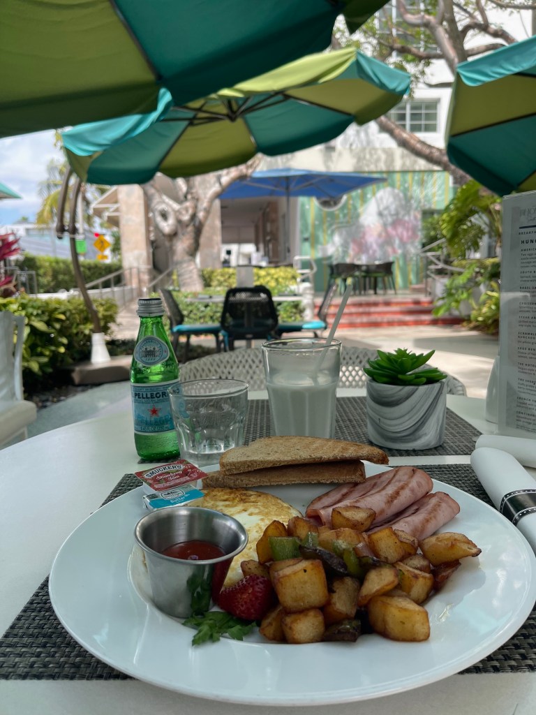 I woke up at 10 am I went to the pool to swim and relax like usual getting more tan day by day and than I took the bus to the fashion district of Miami where are all the bog brand shops and I got the chance to have break at the Fendi Cafe getting a Cappucino and a fruit salad pretty expensive but well it was my first time in a Fendi Caffee and I enjoyed it honestly. Later on I went back to Miami South Beach and the weather was a bit cloudy not the best so I took a little nap and than I got ready that at 8 pm my friend Indra that I met in Australia during the farm work comes to pick my up and we went for dinner at Lagniappe it was very nice to see her again after a long time and after all the things that happened during that two years of pandemic how she escape from Australia and got a chance to build a new life in America, it was very interesting and she told me also few thing about Miami and how the things are working there and than she brings be back to the hostel to sleep.
