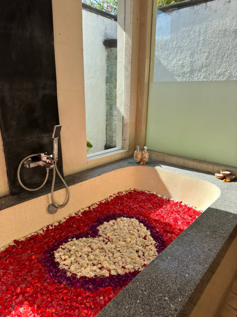 ( Bath decorated with flowers, The Club Villas Seminyak )