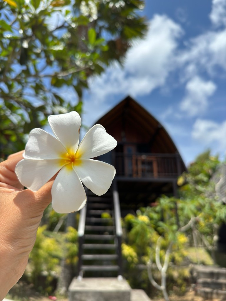 Woke up at 5 am quickly got ready and then the driver comes to pick us up in front of the cabin to go to the port where we catch a boat to go to a little island called Gili Putih Sumberkima we stayed there to watch the sunrise and then the skipper took us back to the port and we went to the Mangrove Bay Restaurant and Hostel where we had a breakfast in there and it was absolutely nice. After we called the shuttle to go back up to the retreat where we did the check out at 12 pm and we took the shuttle back down to Mangrove Bay where we waited like an hour for a Gojek but finally it arrived which actually was the sister of the guy and we went to pick up her husband that drove up in the mountains to take us in the next accommodation near the lakes. Once we get there we did the check in and we went for a walk around the village and we stoped for dinner in a little typical restaurant Warung Buk Made Mus. Then we went back to the room to have a quick shower and sleep.