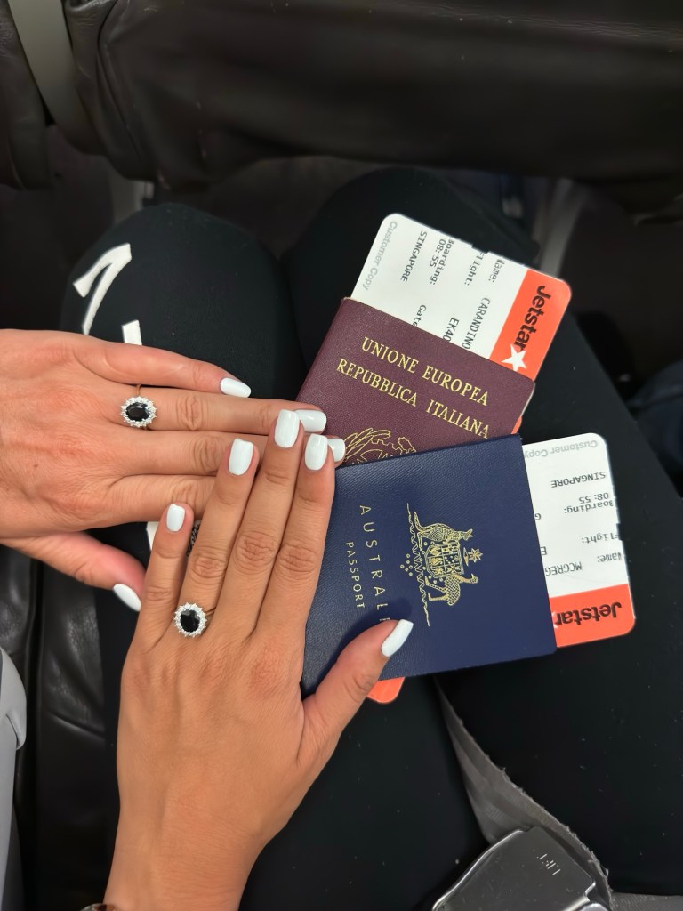 ( Ready to fly to the next country as an engaged couple )