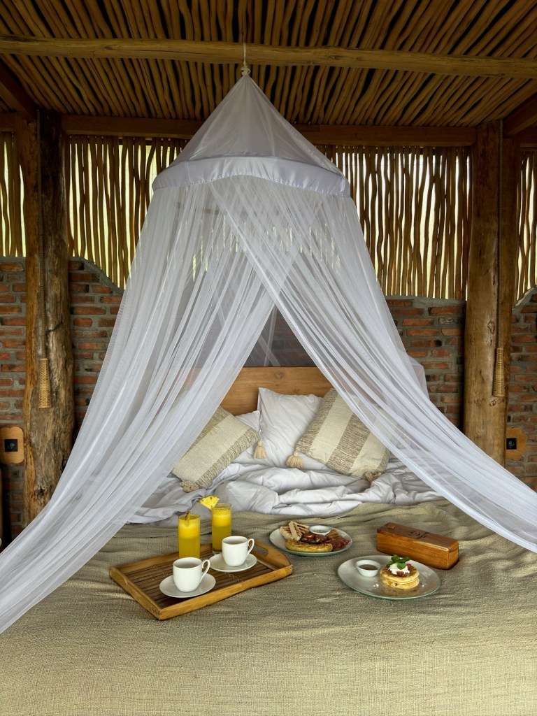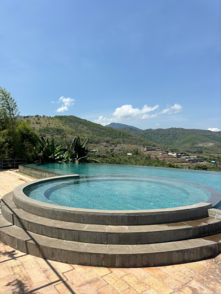 Woke up at 7 am had breakfast in the room and unfortunately the weather still cloudy so we just chilled in the bed and enjoyed the jungle vibes and then a bit later we took few pics. At 12 pm we did the check out and the driver was ready to pick up us since we organized the transport the day before thanks to the lakes tour guide that give us his reference. The travel went pretty smooth just one hour, tired to look for an atm but we couldn’t find it. Once we got at Bali Cliff Glamping we couldn’t check in so we decided to have a quick lunch in there overlooking the pool and the ocean which it was amazing. In the noon after the check in we just chilled and tried to organize stuff for the following days. And before sunset we decided to get a driver from the hotel to take us to the atm to cash out and a little stop in the supermarket. After we went back to the tend, colored Carmel’s hair, had noodle for dinner and we kept organizing thing till we went to sleep pretty tired from the day.